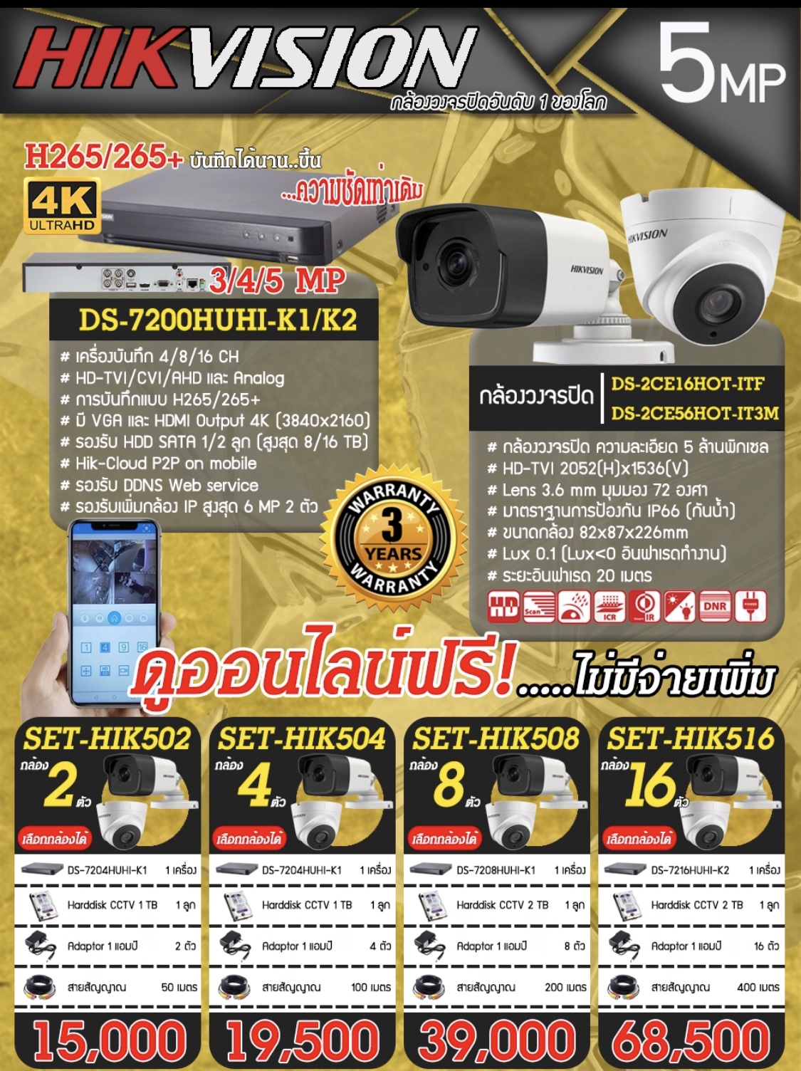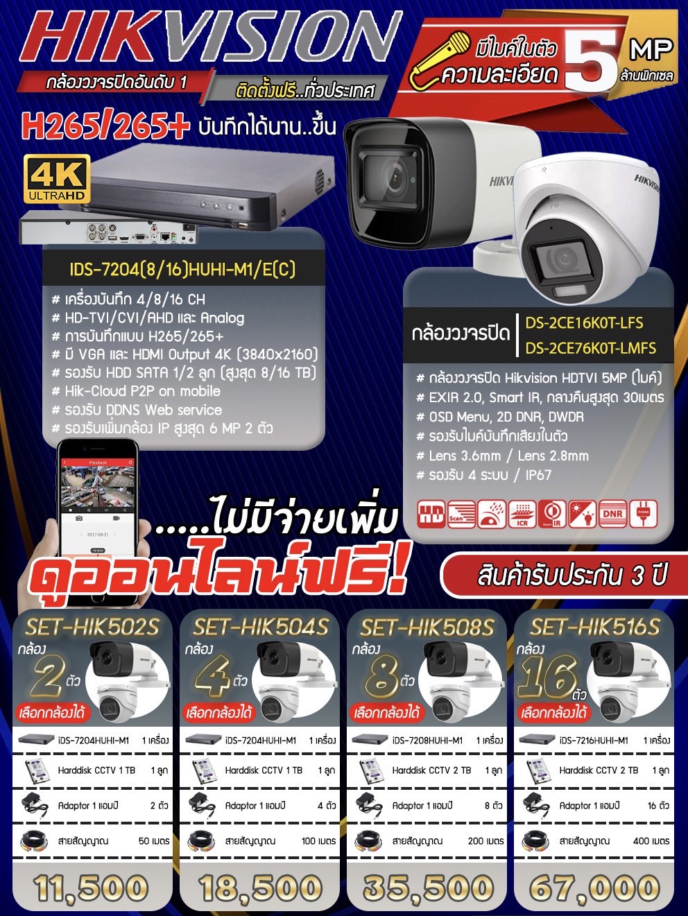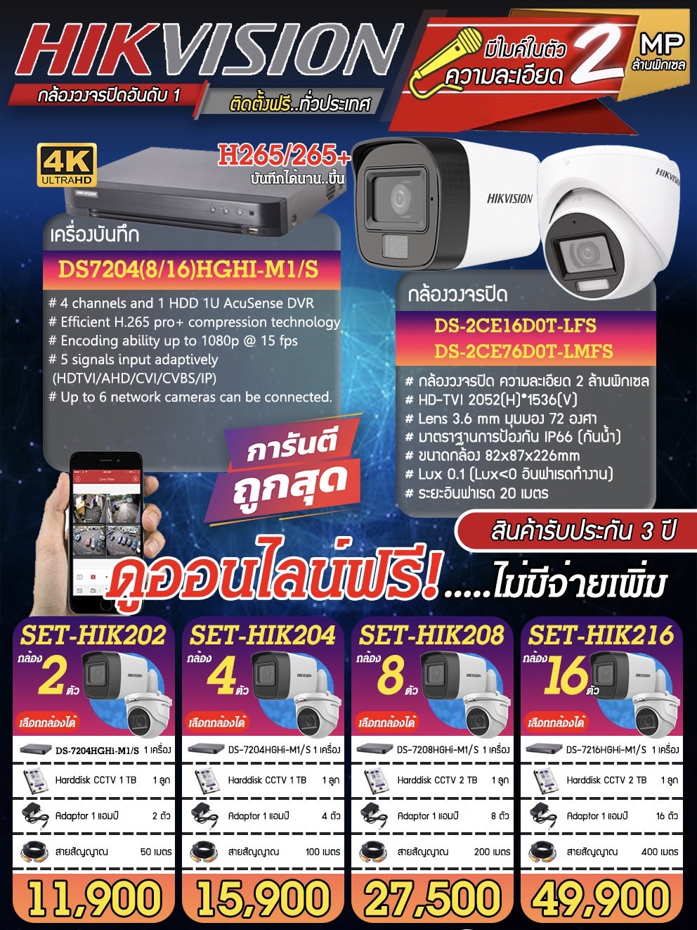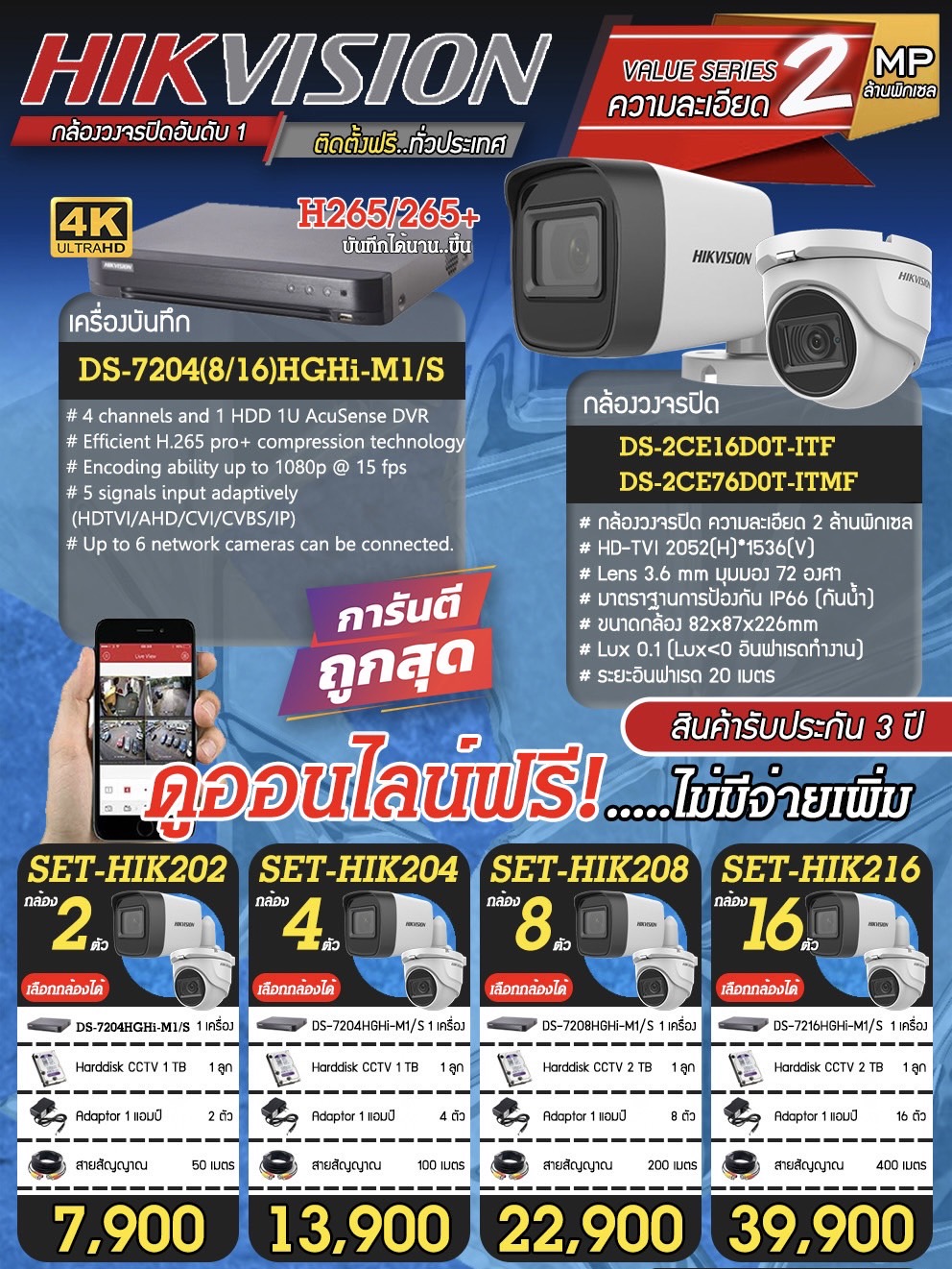 ชุดโปรโมชั่นกล้องวงจรปิด พร้อมติดตั้ง